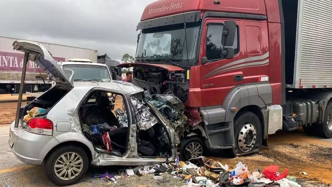 O carro seguia de São Paulo (SP) para Nova Canaã (BA), enquanto a carreta viajava de Lauro de Freitas (BA) para Imbituba (SC), carregada com produtos diversos de uma empresa de vendas on-line. O condutor da carreta, de 36 anos, não sofreu ferimentos.